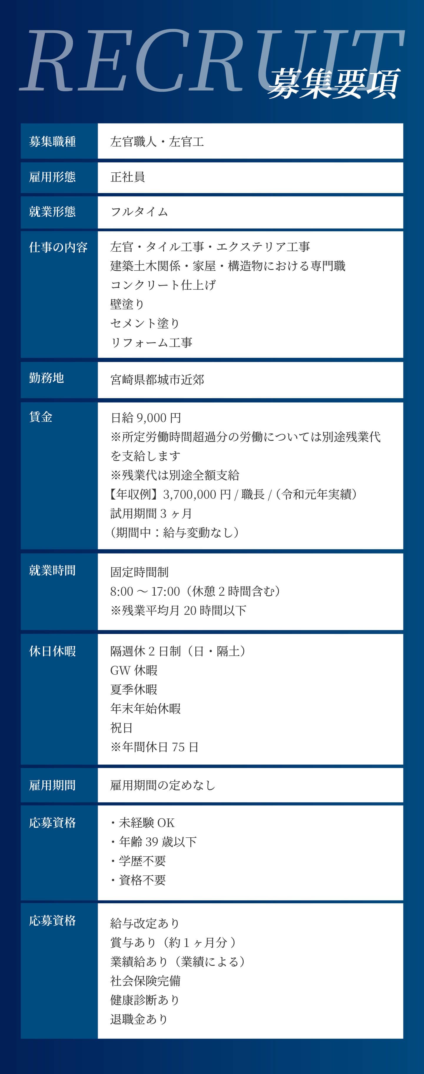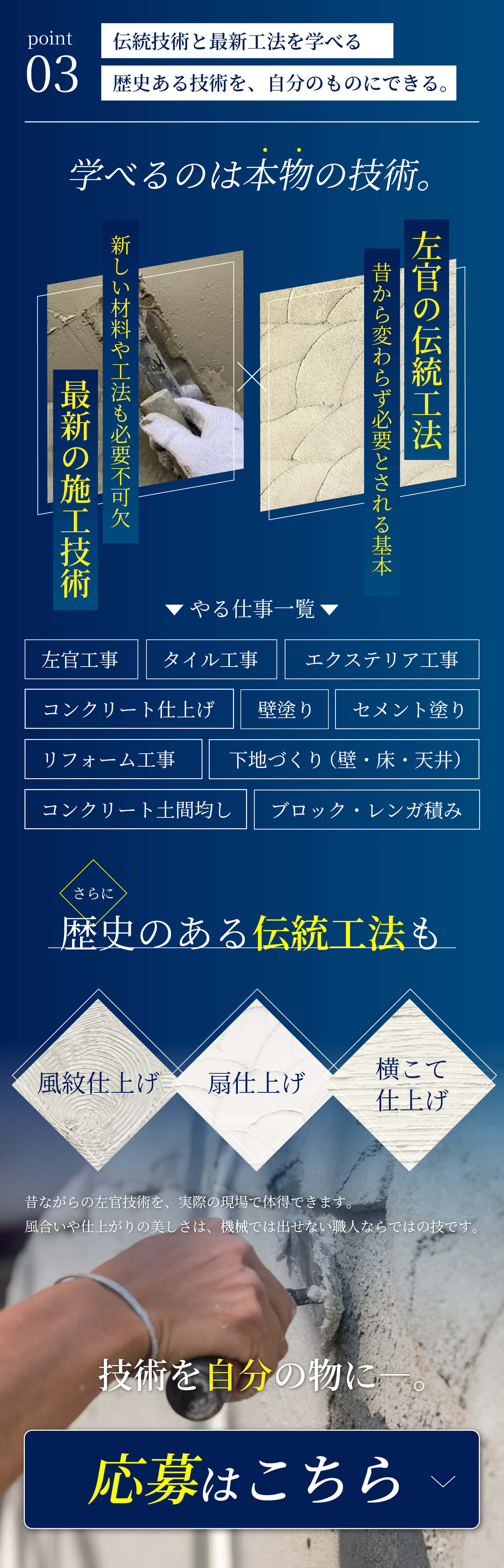 | 事業内容 | 土木/建築/左官工事/タイル/エクステリア/新築・リフォーム |